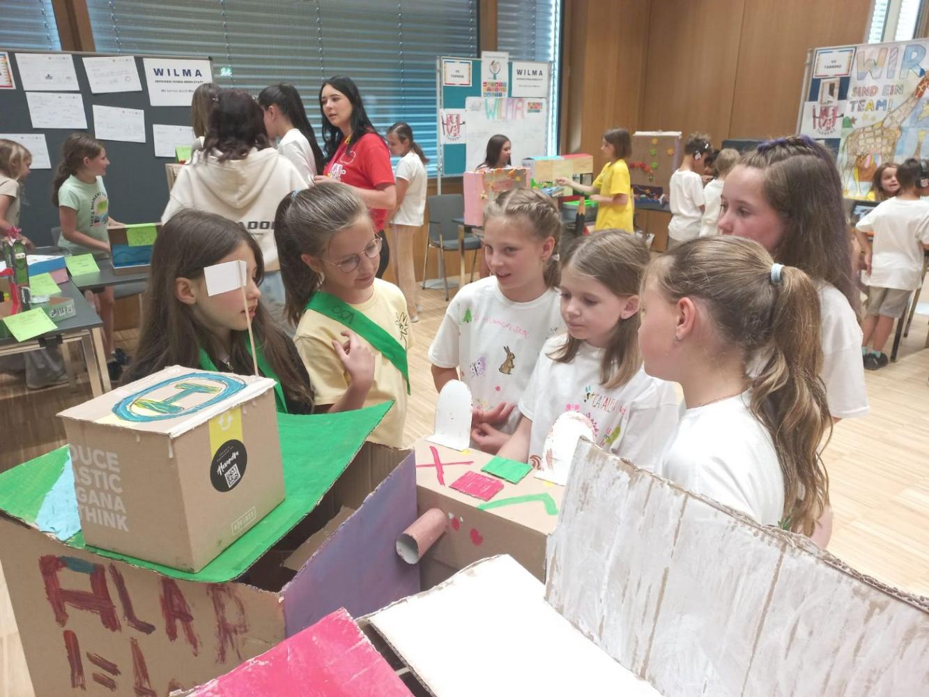 Die Kinder erarbeiteten in einem von HAS Schüler:innen begleiteten Design Thinking-Prozess kreative Ideen und Lösungen zu ausgewählten Themen und stellten eigene Prototypen her.