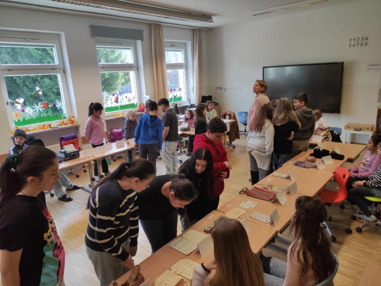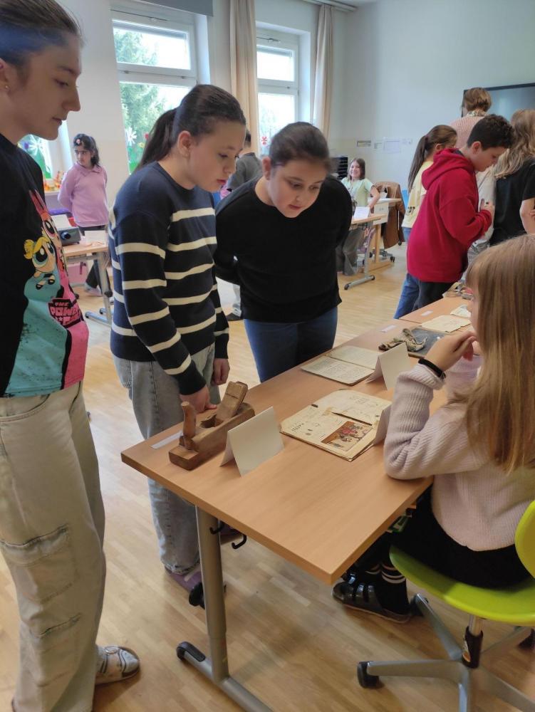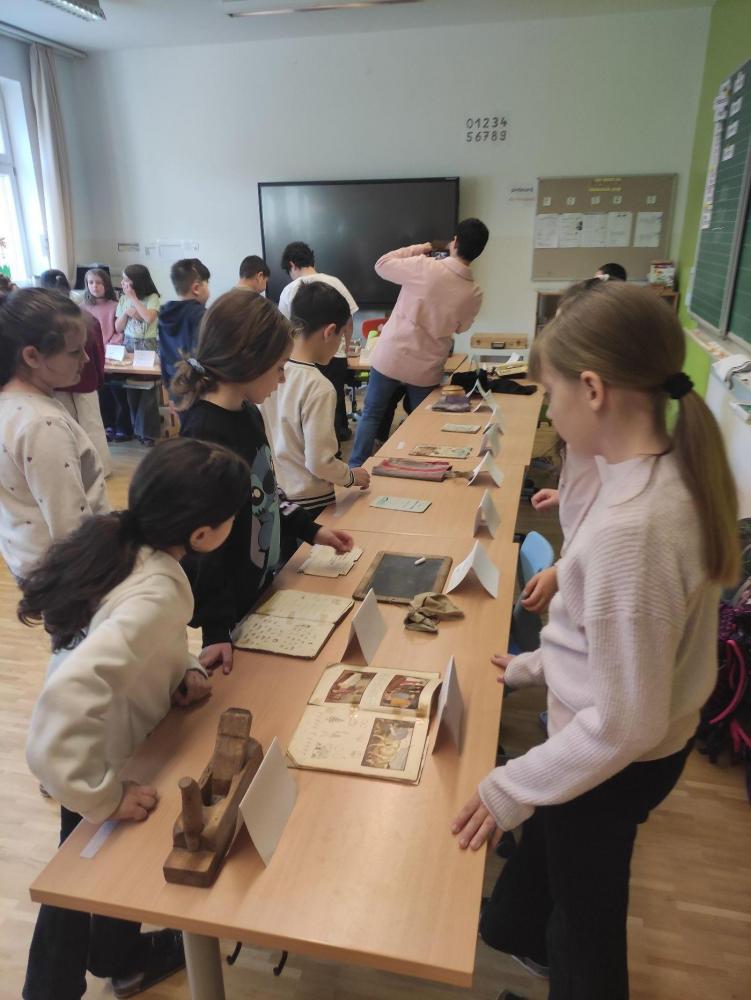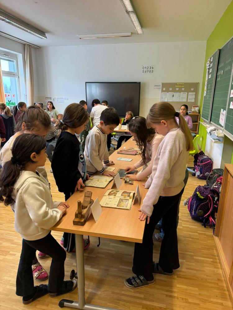 Zum Abschluss gestaltete die Klasse eine eigene Ausstellung. Die Kinder bereiteten alles selbst vor, schrieben Infoschilder und stellten die Gegenstände übersichtlich auf. Mitschülerinnen und Mitschüler sowie Lehrpersonen wurden zur Besichtigung eingeladen.