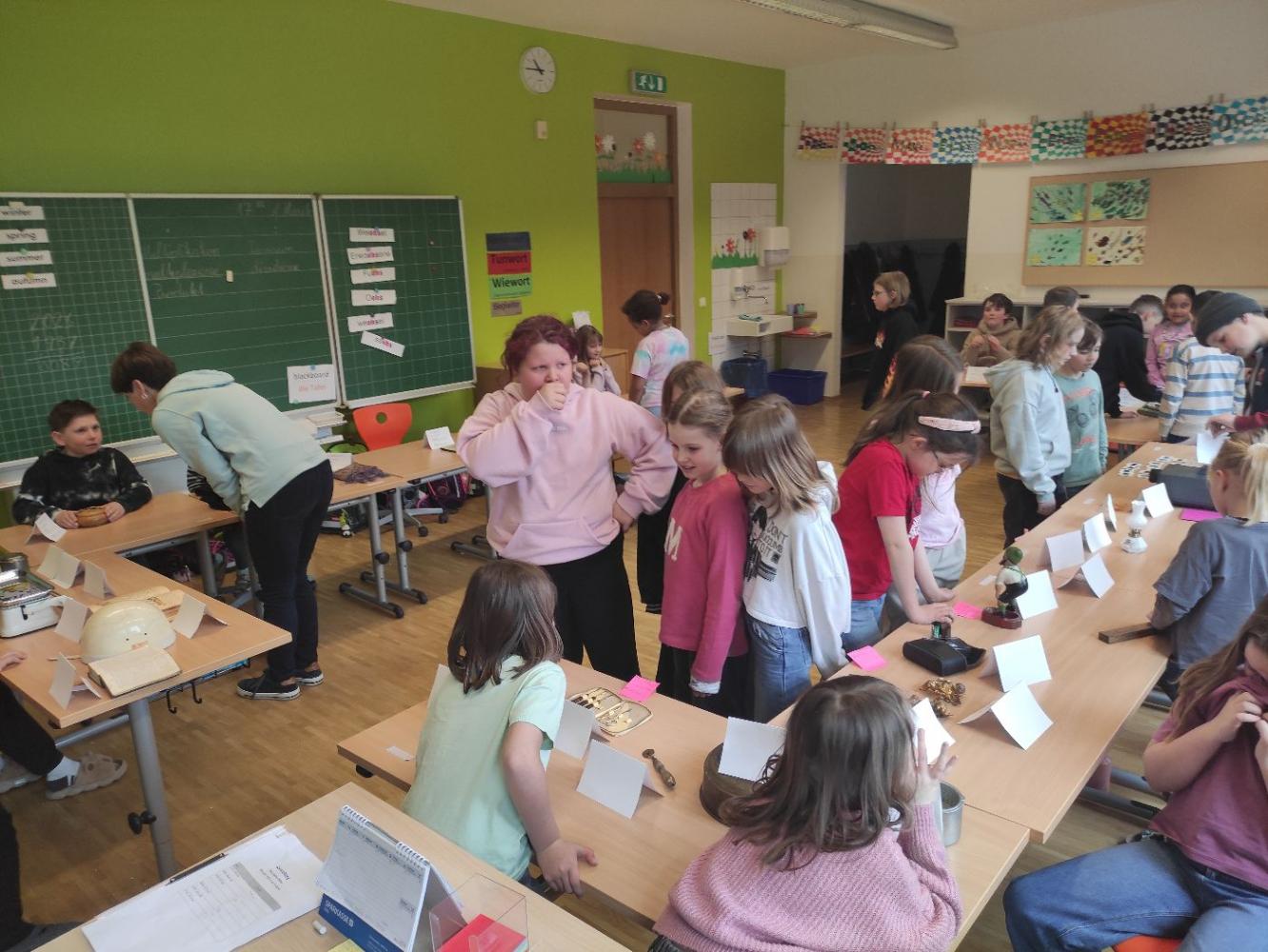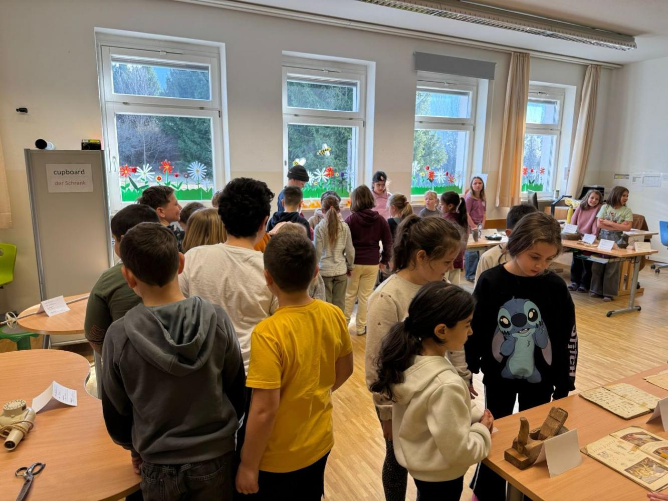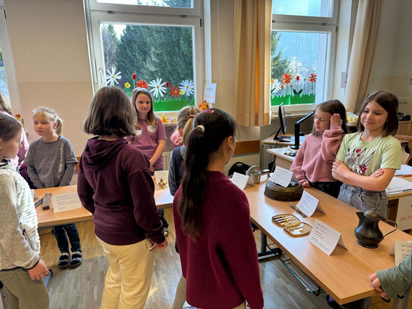 Zum Abschluss gestaltete die Klasse eine eigene Ausstellung. Die Kinder bereiteten alles selbst vor, schrieben Infoschilder und stellten die Gegenstände übersichtlich auf. Mitschülerinnen und Mitschüler sowie Lehrpersonen wurden zur Besichtigung eingeladen.