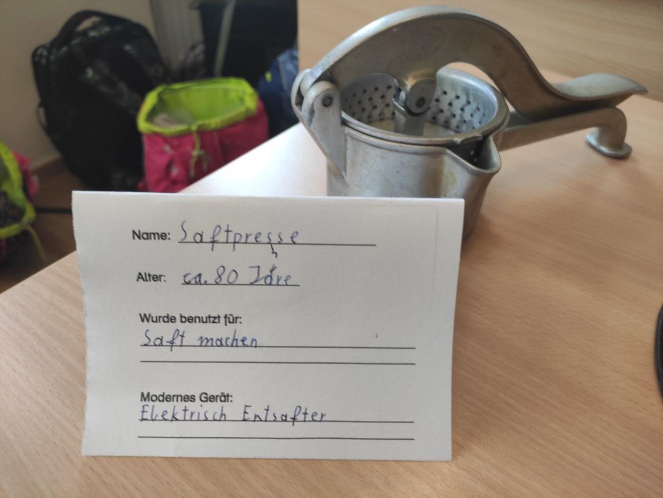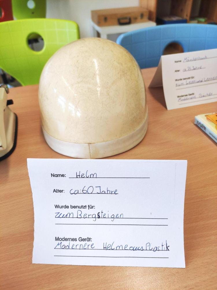 Mit großer Begeisterung sammelten die Kinder zahlreiche alte Gebrauchsgegenstände von zu Hause. Unterstützt von Eltern und Großeltern recherchierten sie die Herkunft und Verwendung dieser Objekte und erfuhren dabei auch die eine oder andere spannende Geschichte aus früheren Zeiten. Zusätzlich nutzten die Schülerinnen und Schüler das Internet und auch Künstliche Intelligenz, um weitere Informationen zu erhalten. Dabei machten sie eine wichtige Erfahrung: Nicht alle Antworten der KI waren logisch oder korrekt – eine wertvolle Lektion im kritischen Umgang mit Informationen.