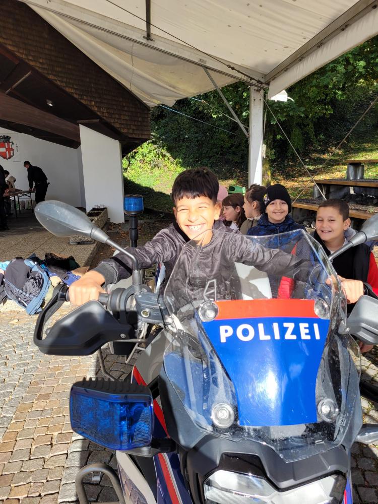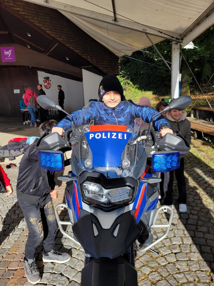 An verschiedenen Stationen konnten die Kinder ihr Wissen unter Beweis stellen und viel über das richtige Verhalten mit Scooter und Inlineskates und in gefährlichen Situationen lernen. Auch ein Polizeiauto konnte genauestens inspiziert und eine Laserpistole ausprobiert werden. Cool war es natürlich auch, auf dem Polizeimotorrad zu sitzen (a.mark)