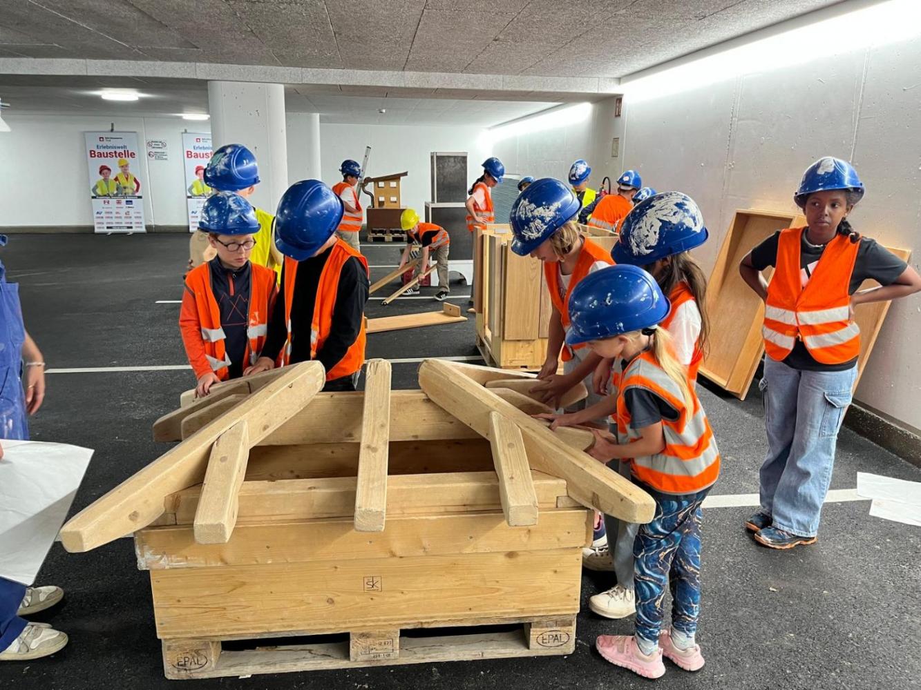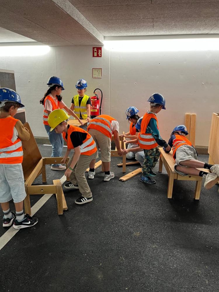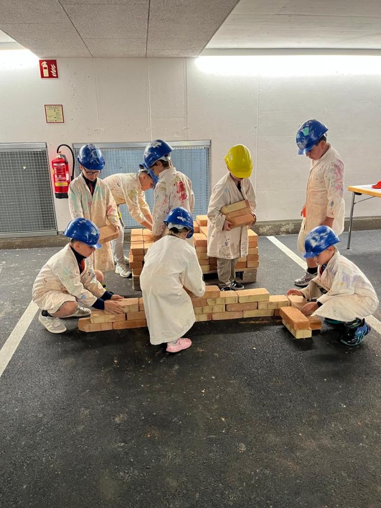 Das zweistündige Programm zeigten die verschiedenen Berufe auf der Baustelle. Die Kinder konnten bei jeder Station das erklärte Handwerk ausüben, z.B Rohre zusammenlegen, Mauern bauen, Mörteln, einen Tisch zusammenbauen, Dach decken, Wand bemalen, Pflasterweg legen, Eisen mit einer Maschine biegen und elektronischen Kreislauf zusammenstecken. Die Schülerinnen und Schüler bekamen einen praktischen Einblick in die verschiedenen Berufe.(l.sailer)
