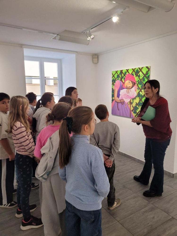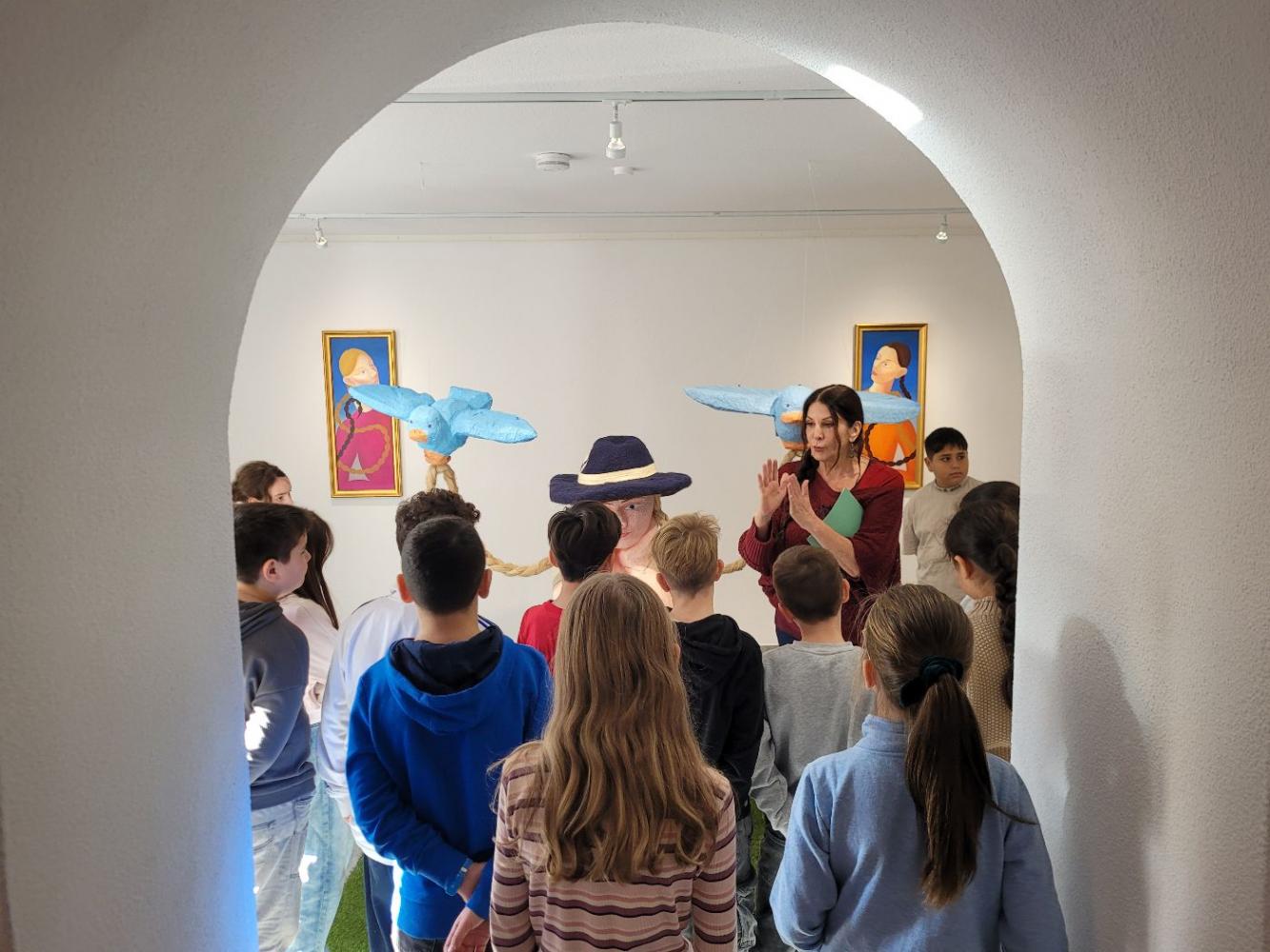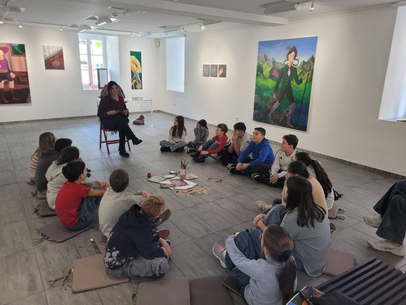 Die beiden 4. Klassen machten am 18.11. 2025 einen Ausflug in die Städtische Galerie Theodor von Hörmann. Dort besuchten sie die Ausstellung "Madler, 's isch Zeit" der Künstlerin Melani Thöni, die sich mit dem Thema „Tradition und Frauenbilder neu gedacht“ beschäftigt. Die Führung von Gabriella Schatz war speziell auf Kinder zugeschnitten und vermittelte spannende Einblicke in die Werke. Die Schülerinnen und Schüler erfuhren, wie die Künstlerin alte Rollenbilder hinterfragt und neue Sichtweisen eröffnet. Nach der Führung durften die Kinder selbst kreativ werden: Sie zeichneten eigene Bilder, inspiriert von den Eindrücken der Ausstellung. Dabei entstanden viele fantasievolle Werke, die zeigten, wie unterschiedlich Tradition und Frauenbilder aus Kindersicht interpretiert werden können. Der Besuch war ein gelungener Ausflug, der Kunstverständnis und Kreativität förderte und den Kindern sehr gut gefallen hatte. (a.mark)