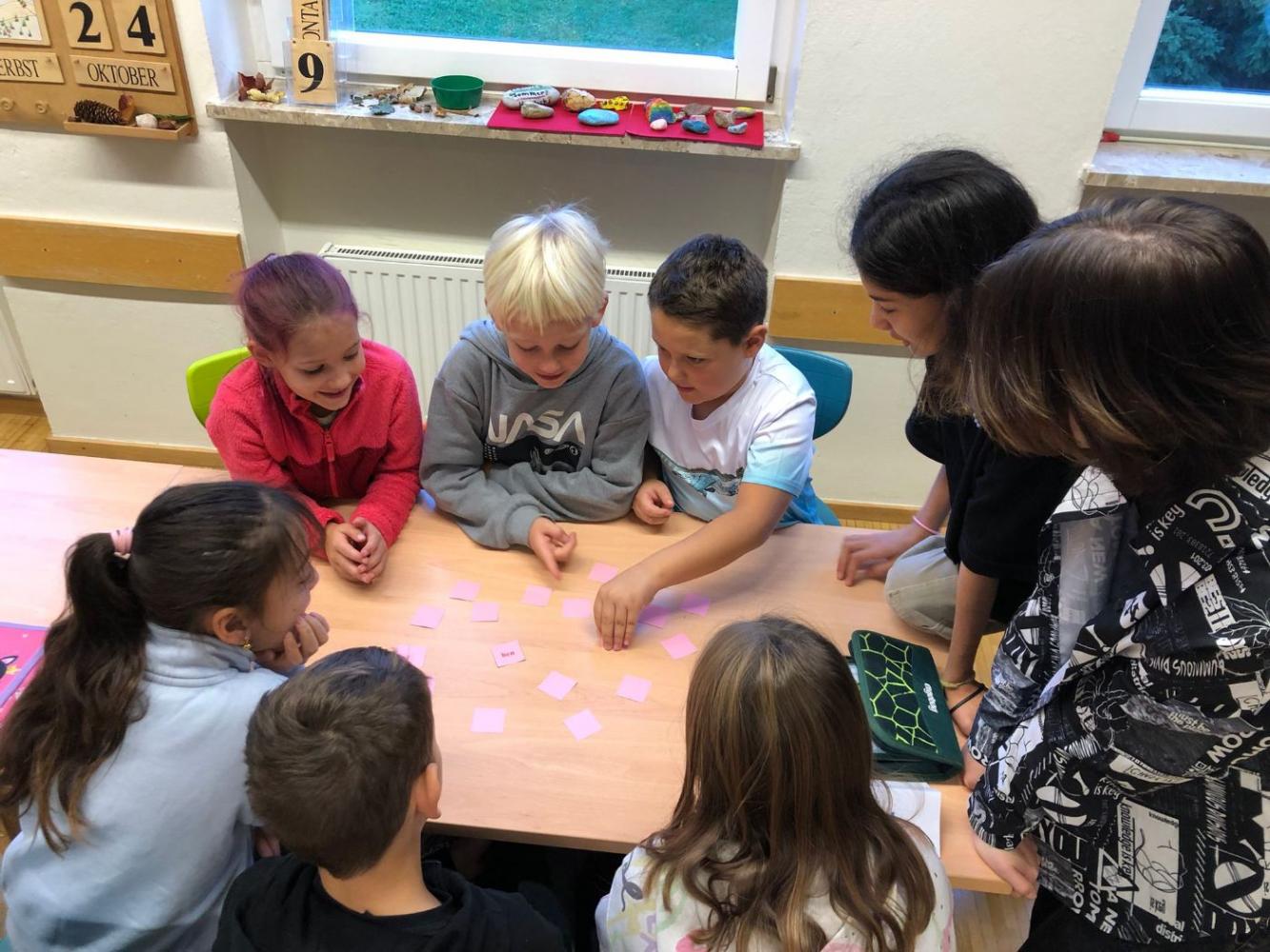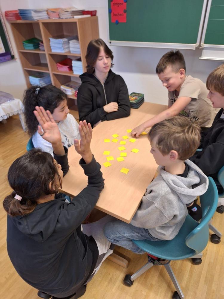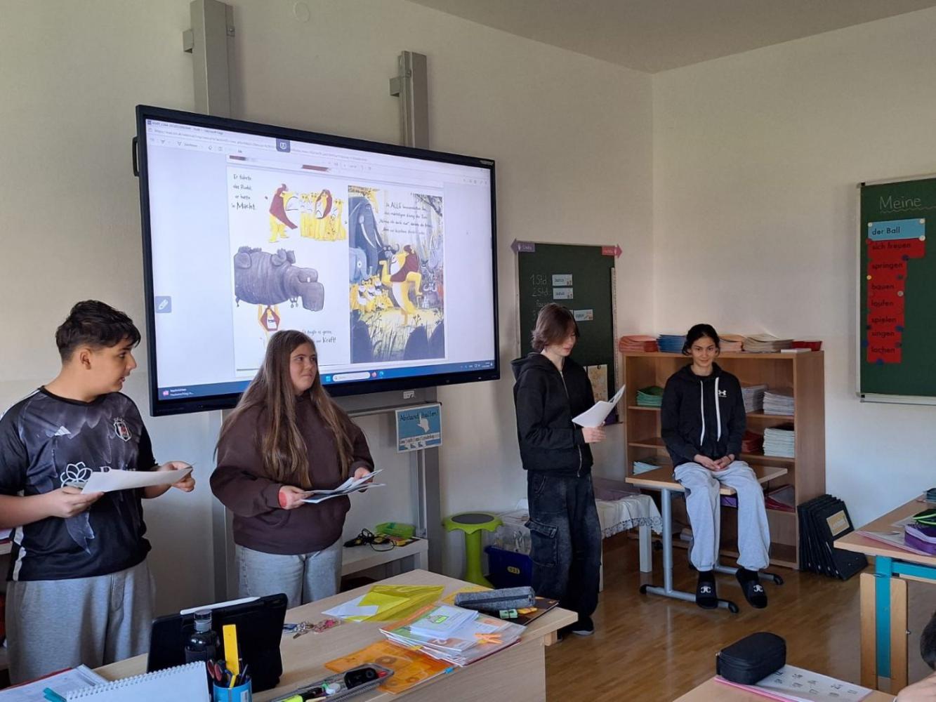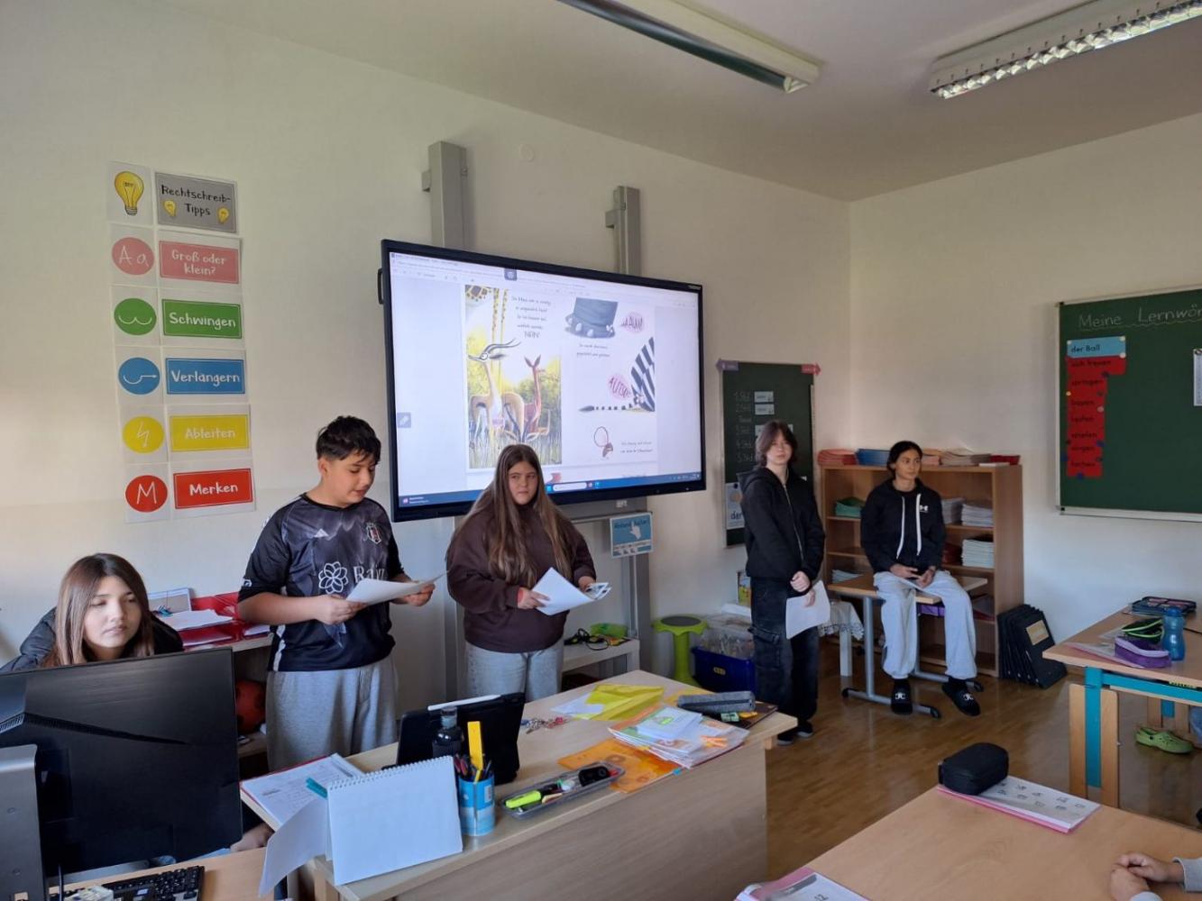 Die „Großen“ aus unserer Nachbarschule, der IT Mittelschule Oberstadt, eine Gruppe von acht SchülerInnen, besuchten unsere 2a- und 2b-Klasse für eine Vorlesestunde. Begleitet wurden sie von ihrer Lehrerin Monika Chebbo.