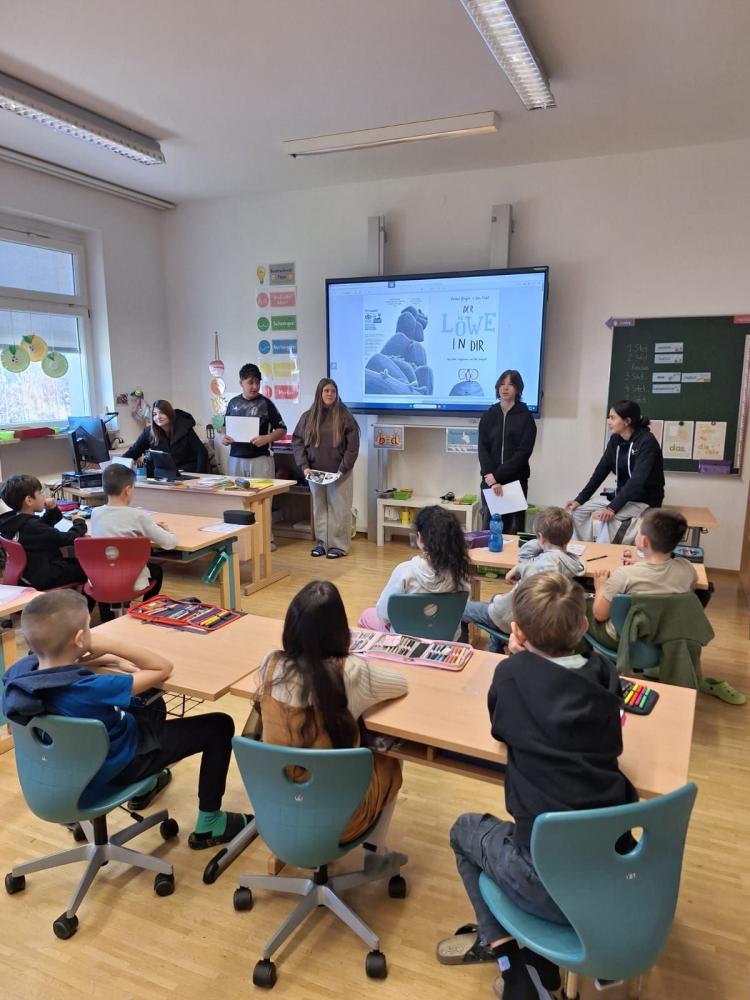Sie lasen den Kindern das Bilderbuch „Der Löwe in dir“ vor. Dabei zeigten sie auch noch ihr schauspielerisches Können. Gespannt lauschten die Zweitklässler der lustigen Geschichte.