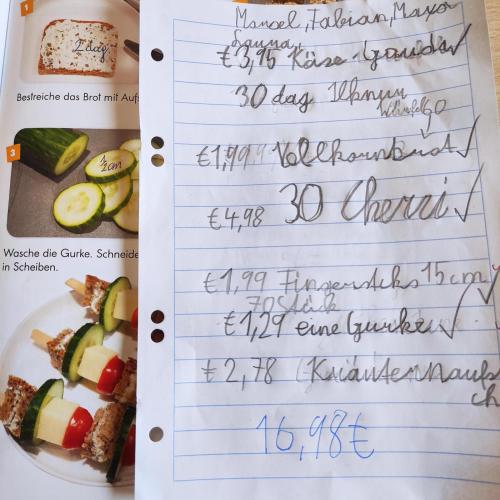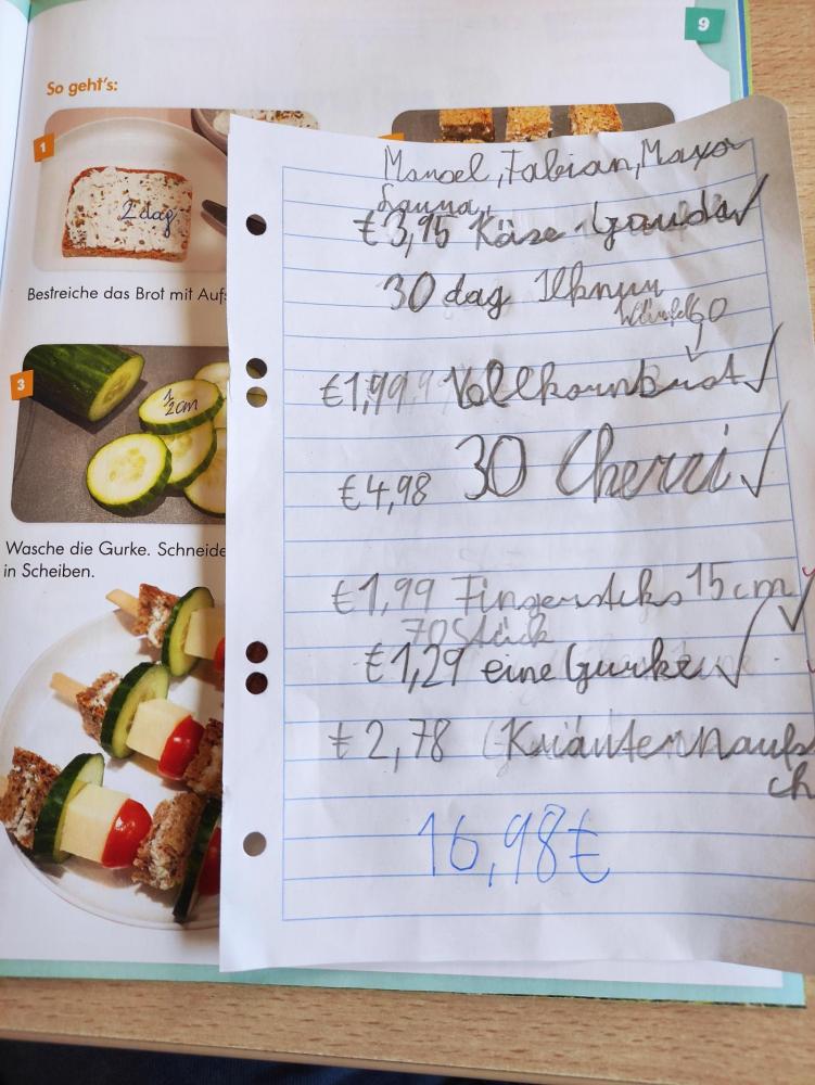 Die Schüler*innen berechneten die benötigten Mengen der Zutaten, recherchierten Preise im Internet und in Prospekten und stellten so das Budget zusammen.