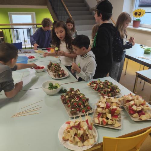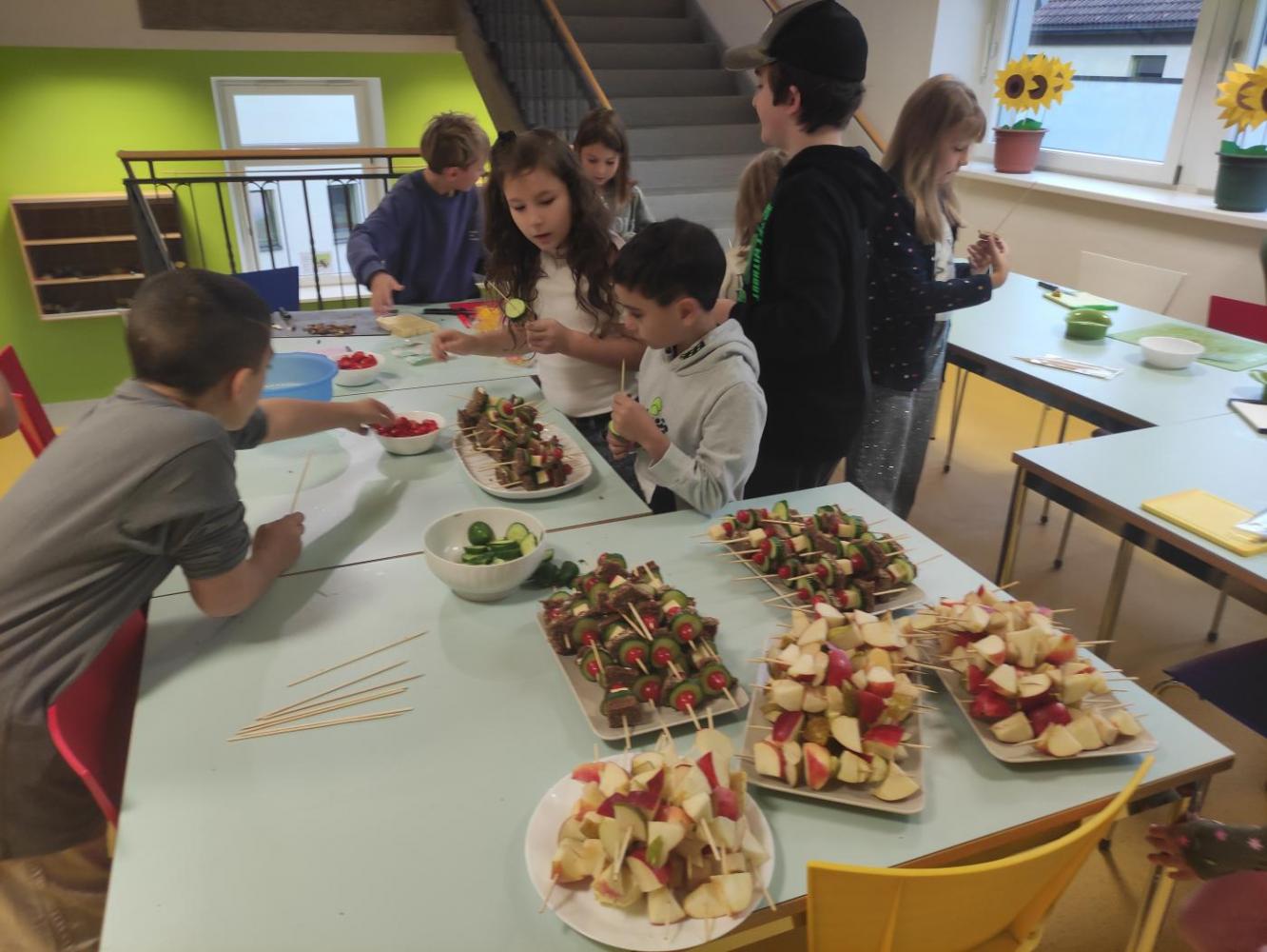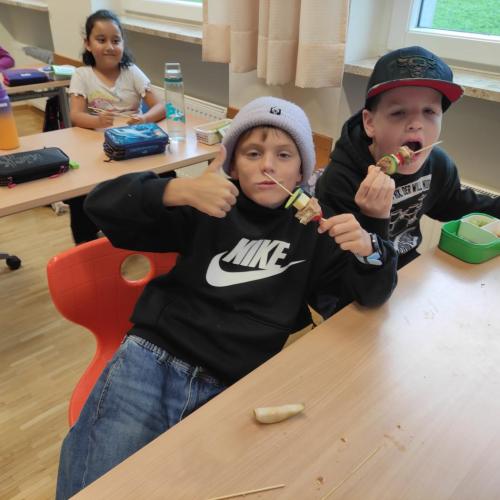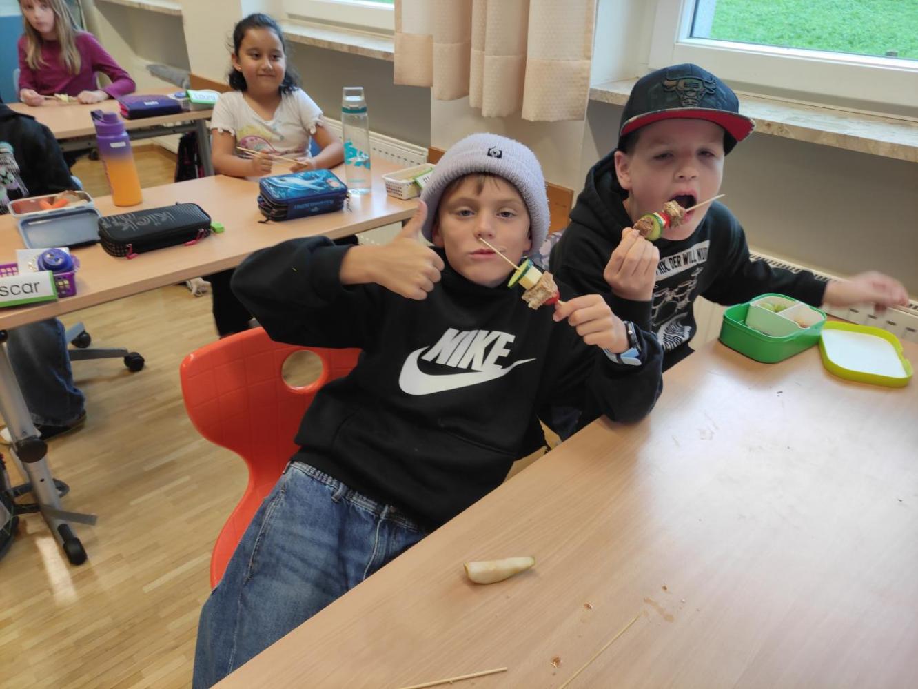 Ausgangspunkt war das Lesen eines Rezepts für gesunde Jausenspieße – und schnell entstand die Idee, diese selbst zuzubereiten und mit der Klasse zu teilen.