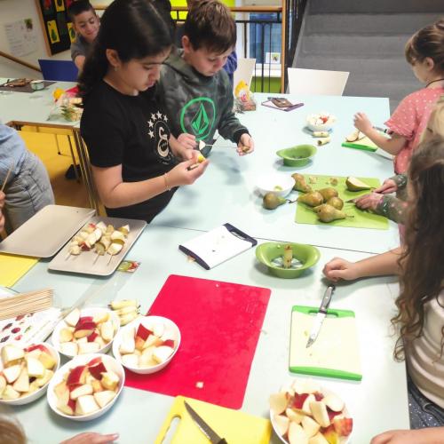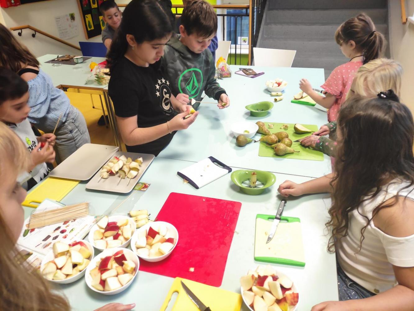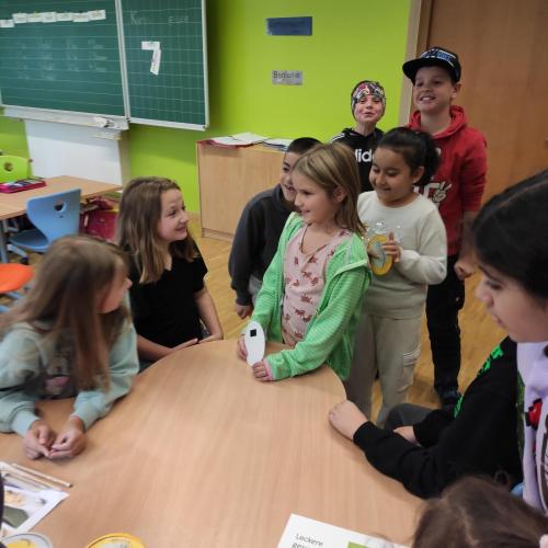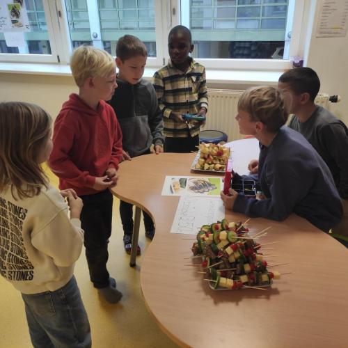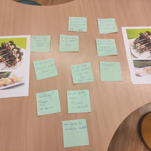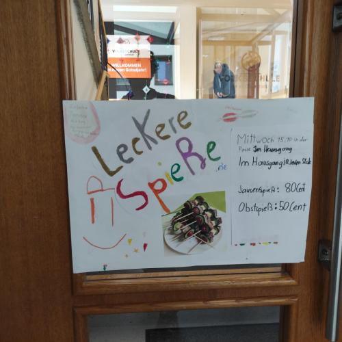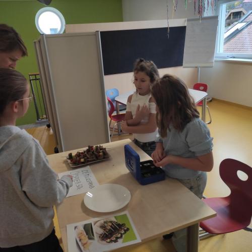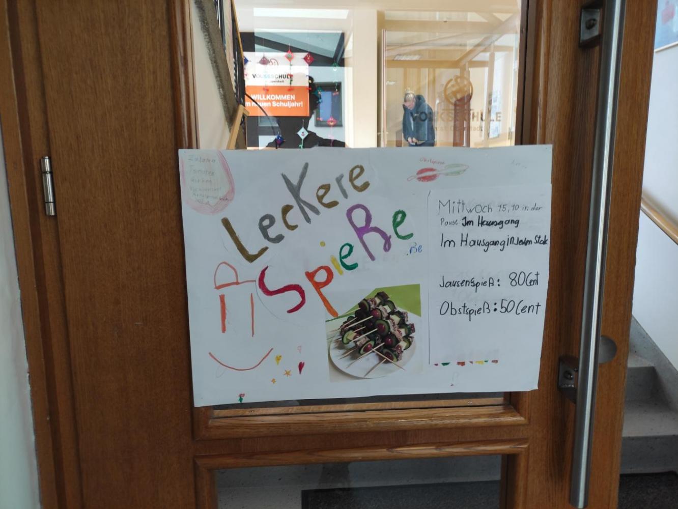Um die richtige Menge an Spießen vorzubereiten, führten sie sogar eine kleine „Marktanalyse“ durch: In Kleingruppen besuchten sie die anderen Klassen und befragten die Schüler*innen nach ihrem Interesse.