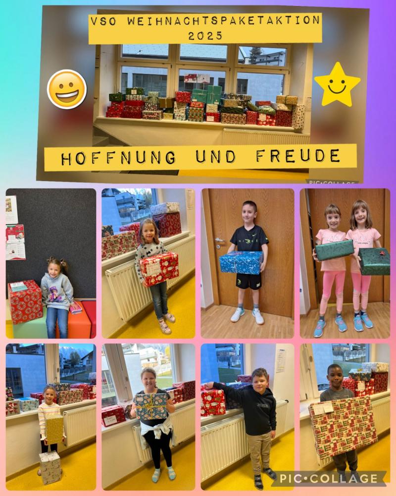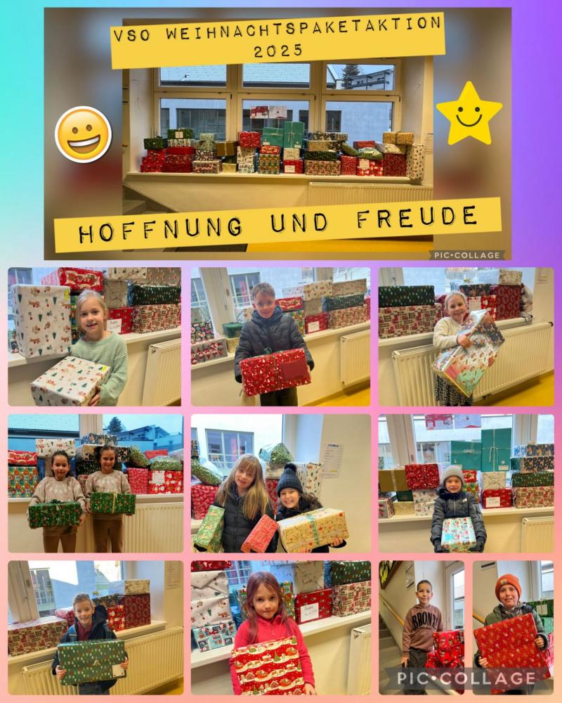 Insgesamt 44 Pakete richteten SchülerInnen unserer Schule für die Hilfsaktion "Hoffnung und Freude".